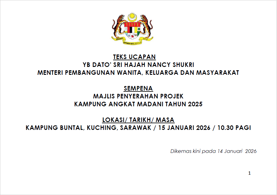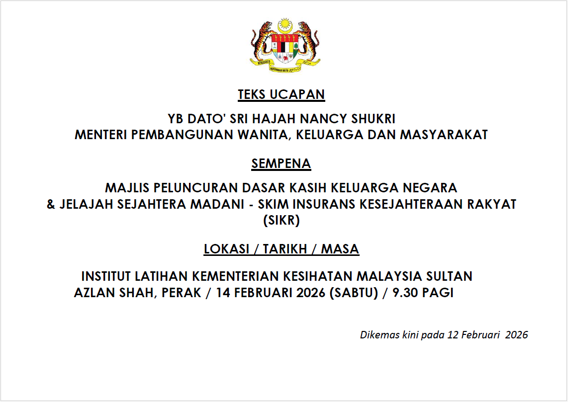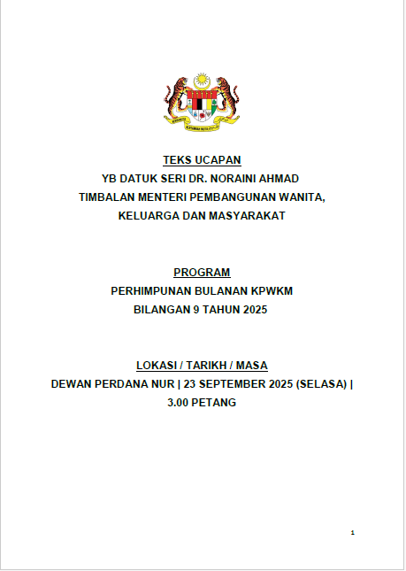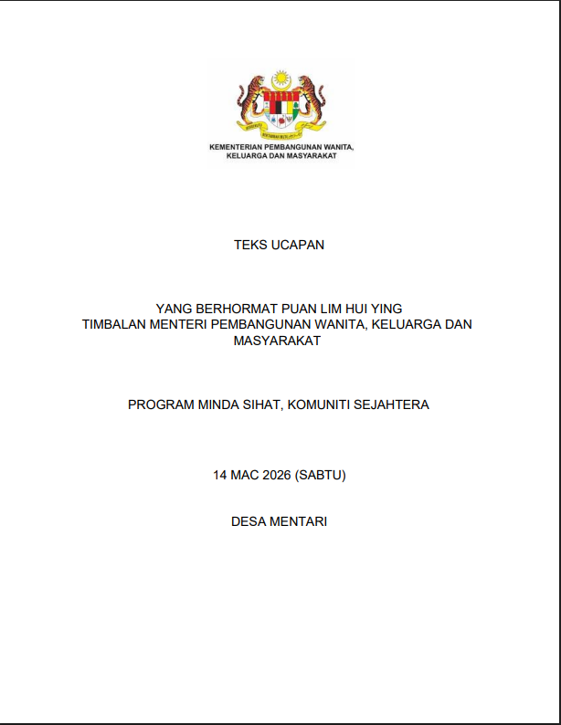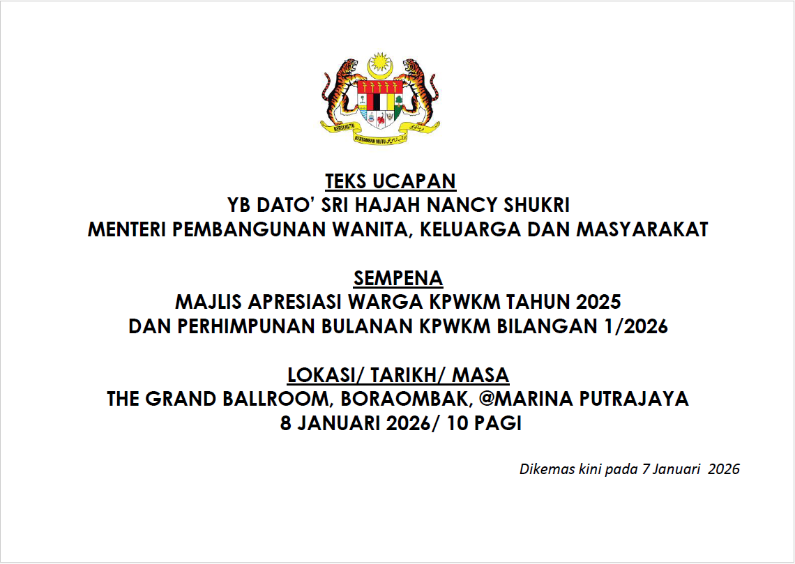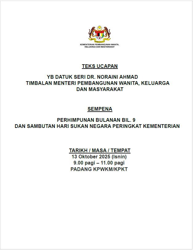 TEKS UCAPAN MENTERI / TIMBALAN MENTERI