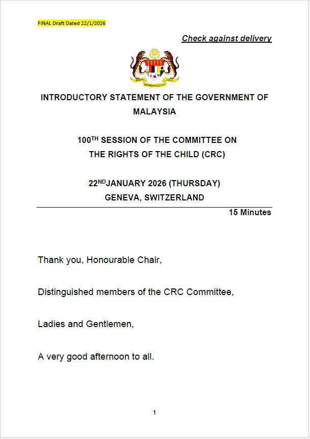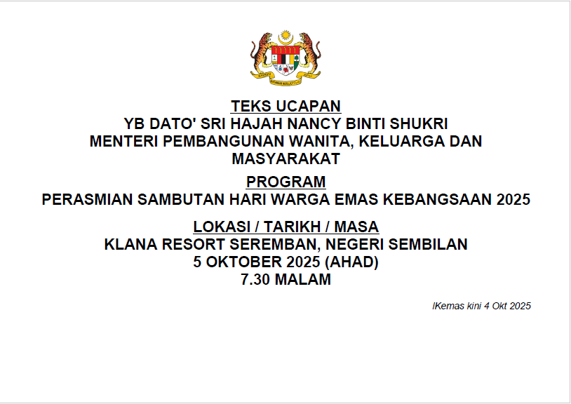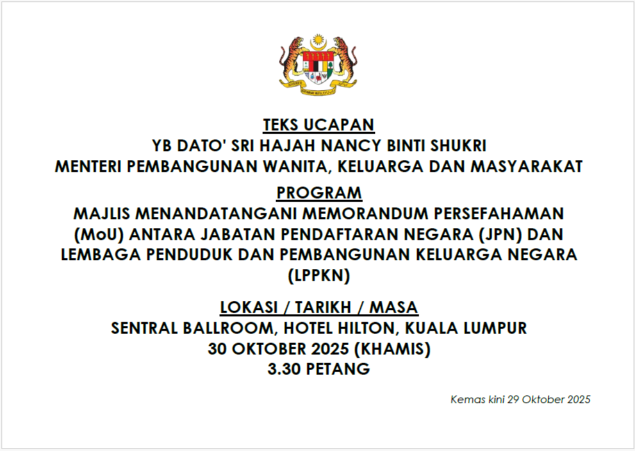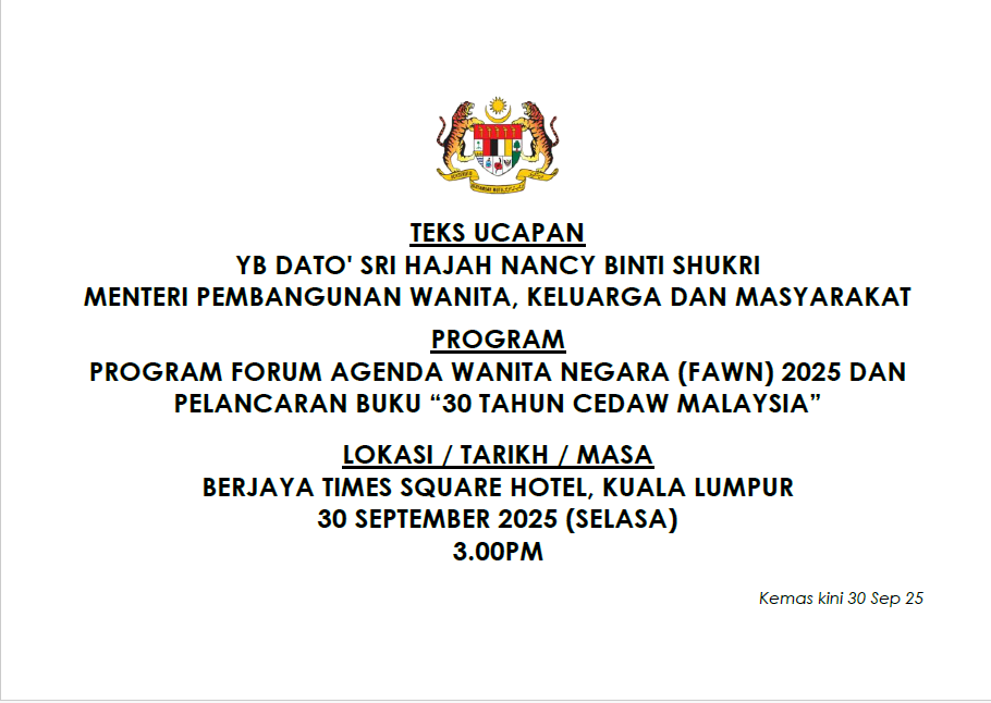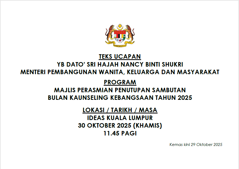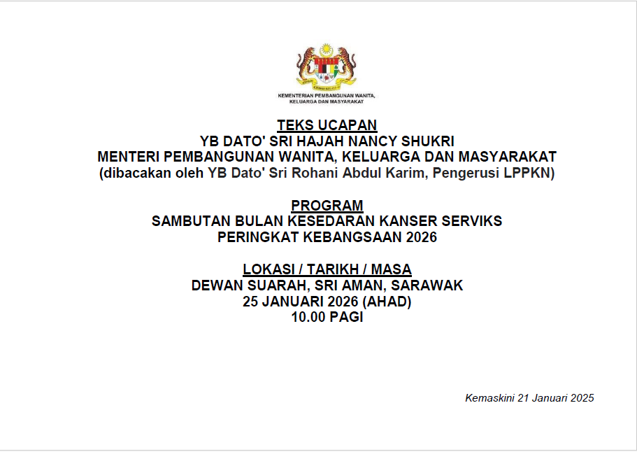 TEKS UCAPAN MENTERI / TIMBALAN MENTERI