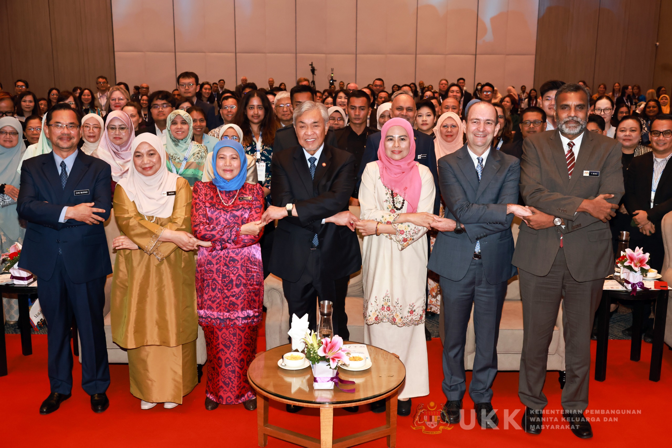 Turut sama hadir ialah YB Datuk Seri Dr. Noraini Ahmad, Timbalan Menteri Pembangunan Wanita, Keluarga dan Masyarakat, YBhg. Datuk Dr. Maziah Che Yusoff, Ketua Setiausaha KPWKM, YBrs. Encik Mohd Daud Mohd Ariff, Timbalan Ketua Setiausaha (Strategik) KPWKM, YBhg. Datuk Che Murad Sayang Ramjan, Ketua Pengarah JKM, YBhg. Dato' Abdul Shukur Abdullah, Ketua Pengarah LPPKN serta para pegawai jabatan dan agensi.