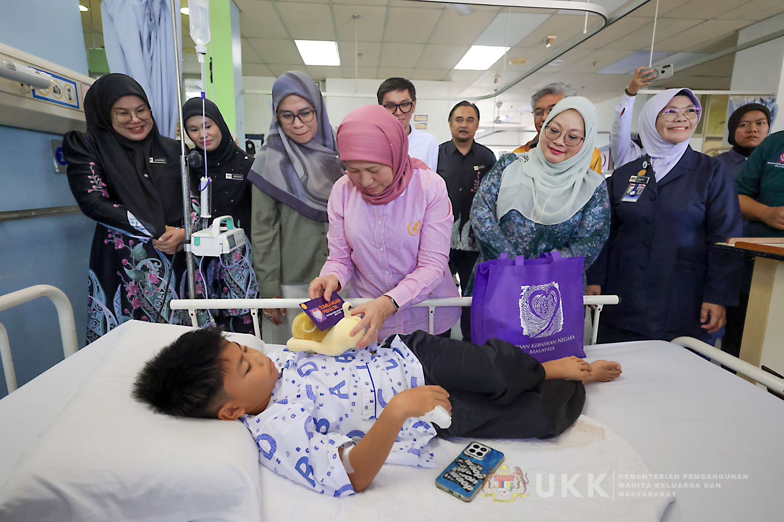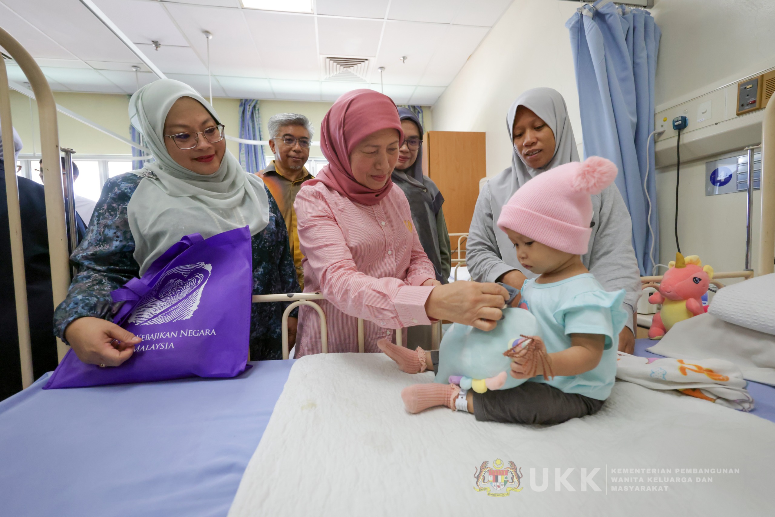 Keceriaan jelas terpancar di wajah pesakit kanak-kanak yang berada di wad kanak-kanak di Hospital Lahad Datu apabila menerima kunjungan YB Dato’ Seri Hajah Nancy Shukri, Menteri Pembangunan Wanita, Keluarga dan Masyarakat merangkap Pengerusi Yayasan Kebajikan Negara (YKN) dalam Sesi Lawatan dan Ramah Mesra bersama Pesakit Wanita dan Kanak-Kanak.