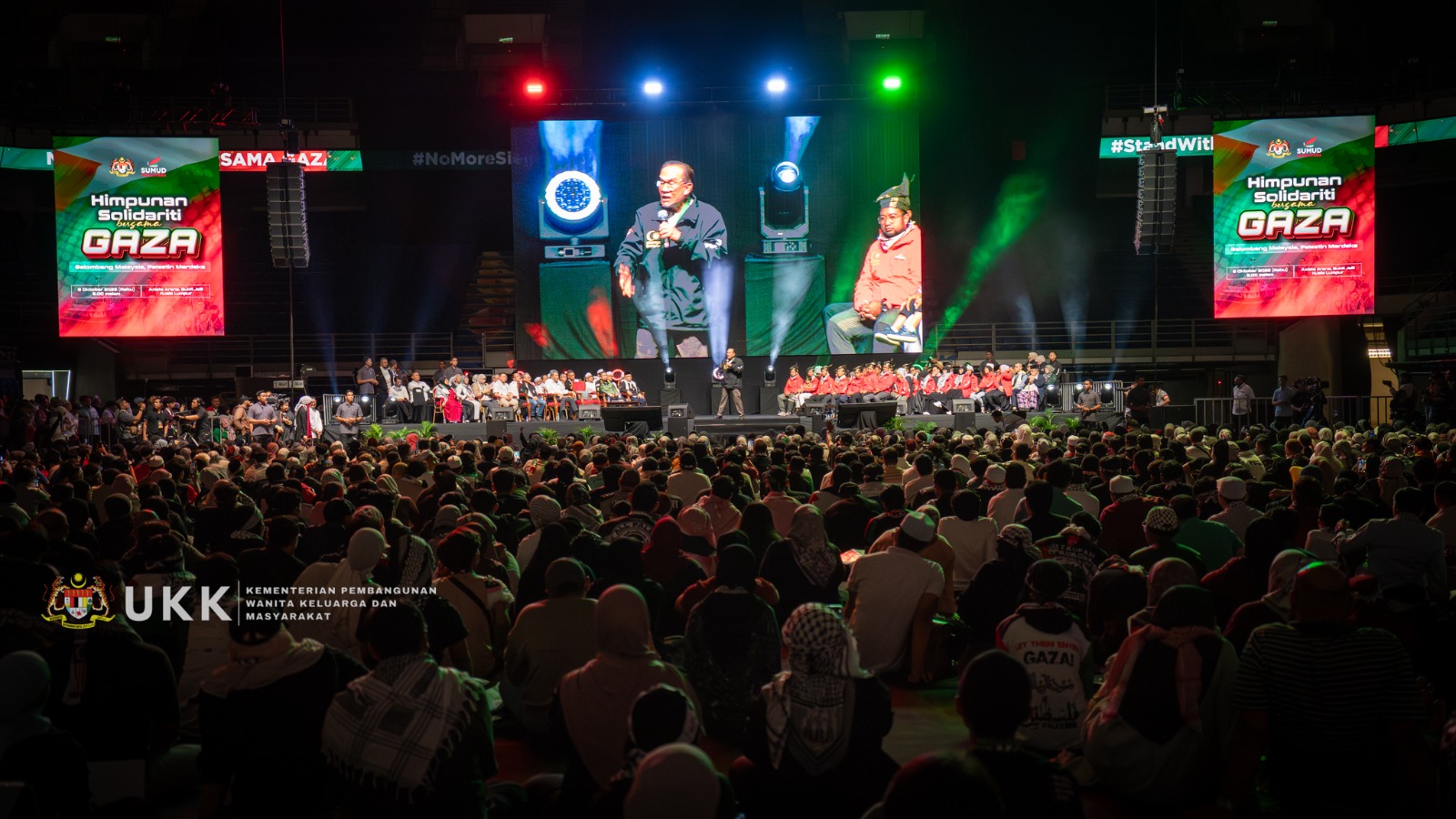 Himpunan Solidariti Bersama Gaza telah diadakan di Axiata Arena dan disempurnakan oleh YAB Datuk Seri Anwar bin Ibrahim Perdana Menteri Malaysia.