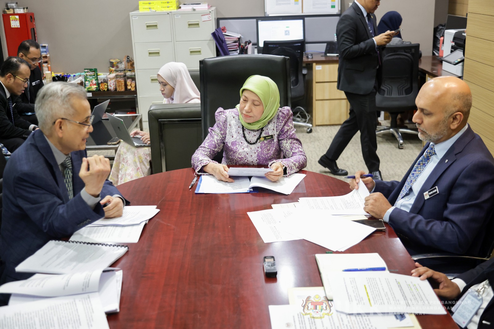 Hadir sama ialah Pesuruhjaya SUHAKAM, Puan Bathmavathi Krishnan serta pegawai-pegawai kanan daripada KPWKM dan SUHAKAM.