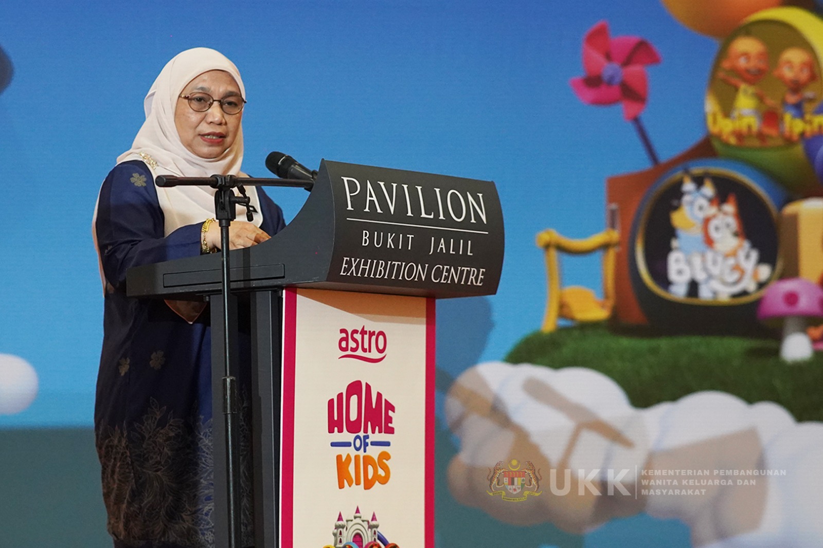 YBhg. Datuk Dr. Maziah Che Yusoff, Ketua Setiausaha Kementerian Pembangunan Wanita, Keluarga dan Masyarakat mewakili YB Dato’ Sri Hajah Nancy Shukri, Menteri Pembangunan Wanita, Keluarga dan Masyarakat telah menyempurnakan Majlis Perasmian Program Astro Home Of Kids di Pavillion Bukit Jalil hari ini.