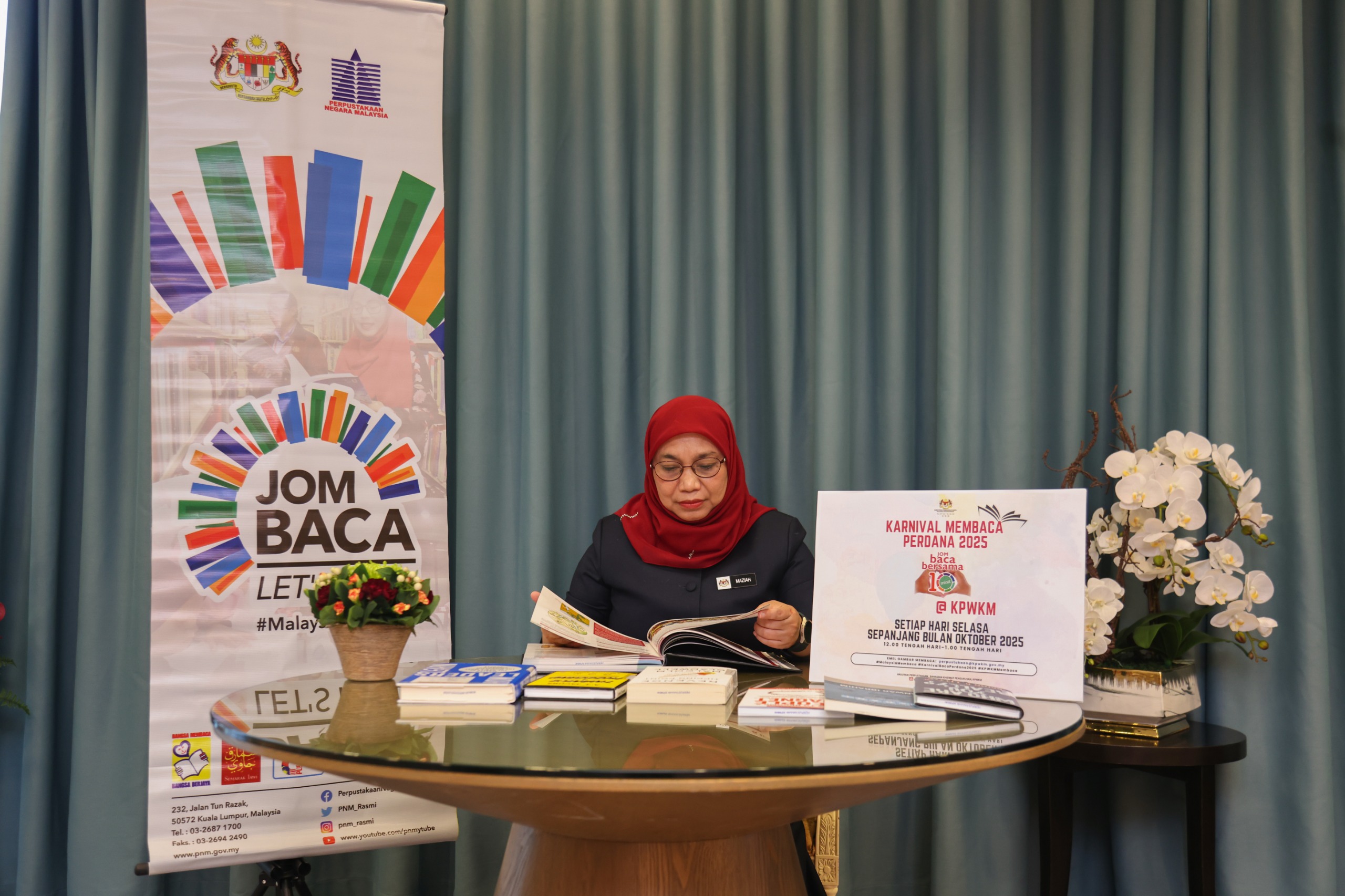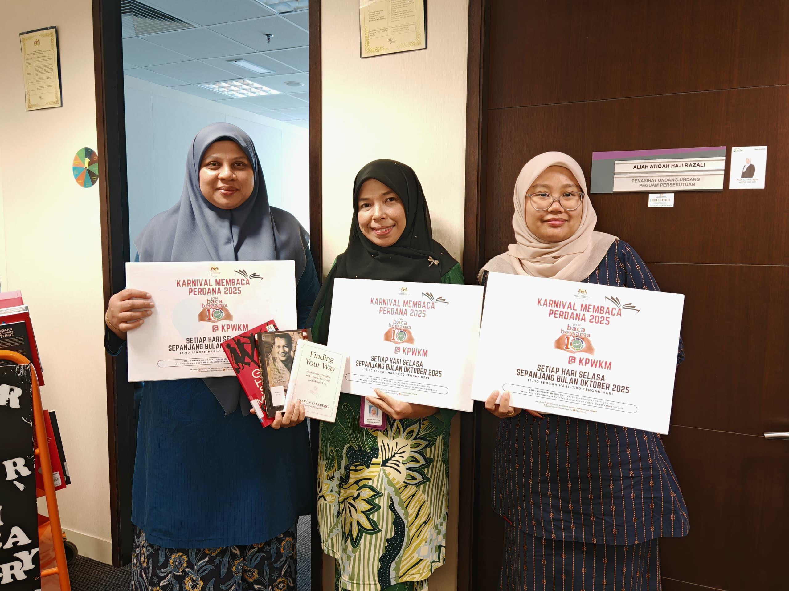 Warga KPWKM turut menyahut Kempen Jom Baca 10 Minit anjuran Kementerian Perpaduan Negara melalui Perpustakaan Negara Malaysia (PNM) sempena Karnival Baca Perdana 2025 yang berlangsung sepanjang bulan Oktober ini.