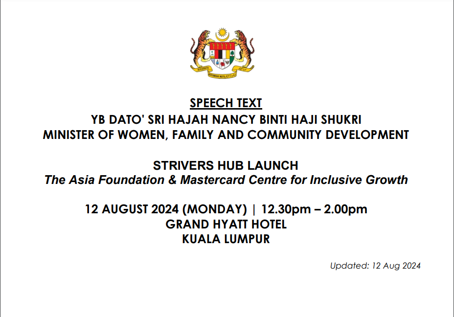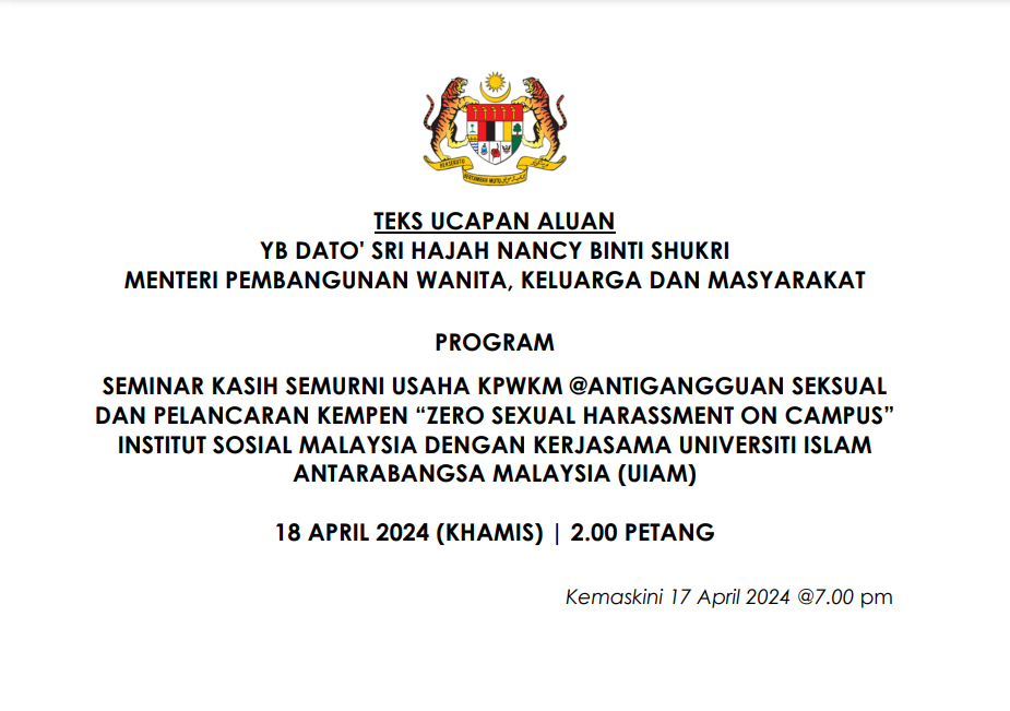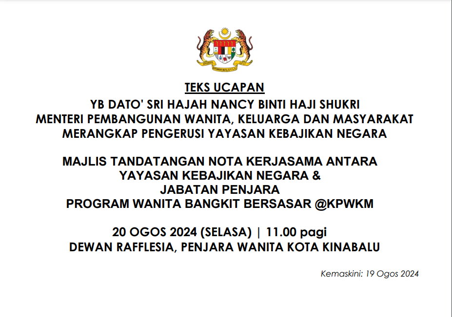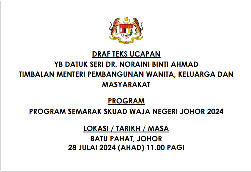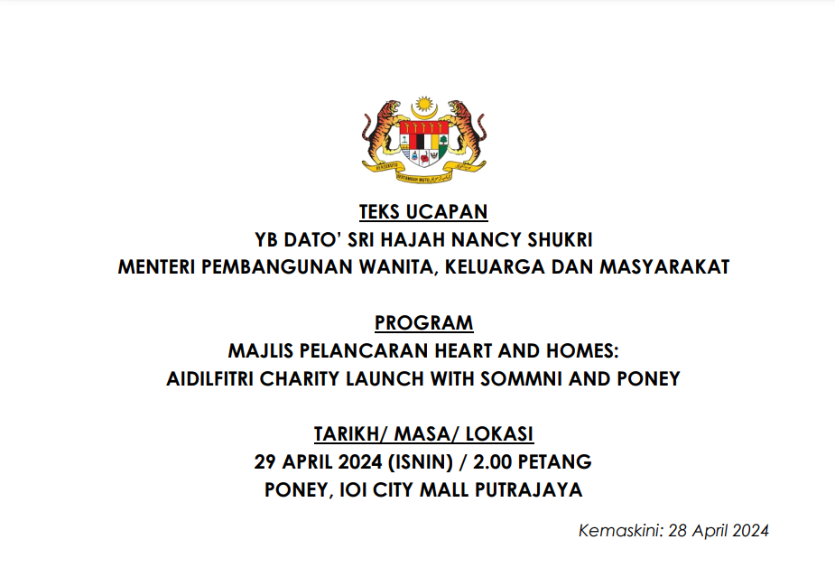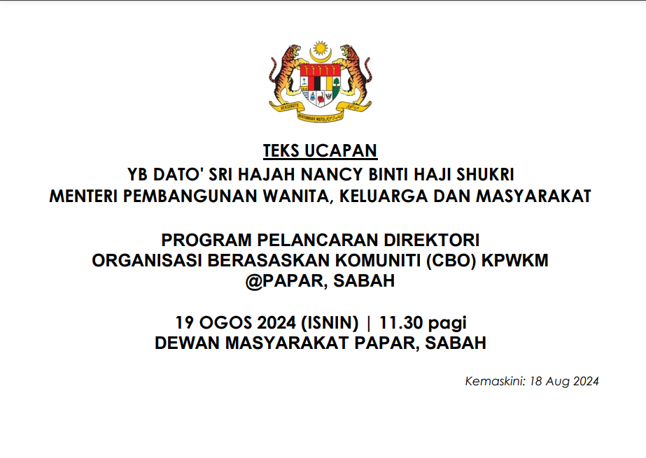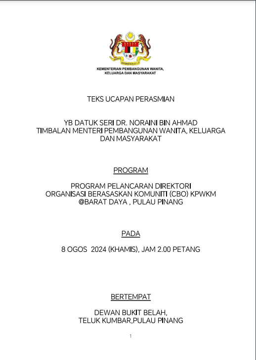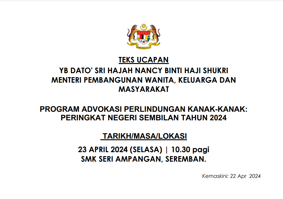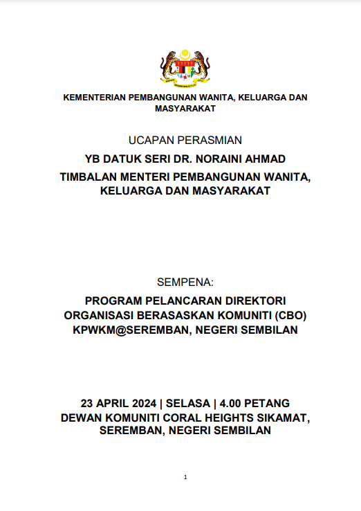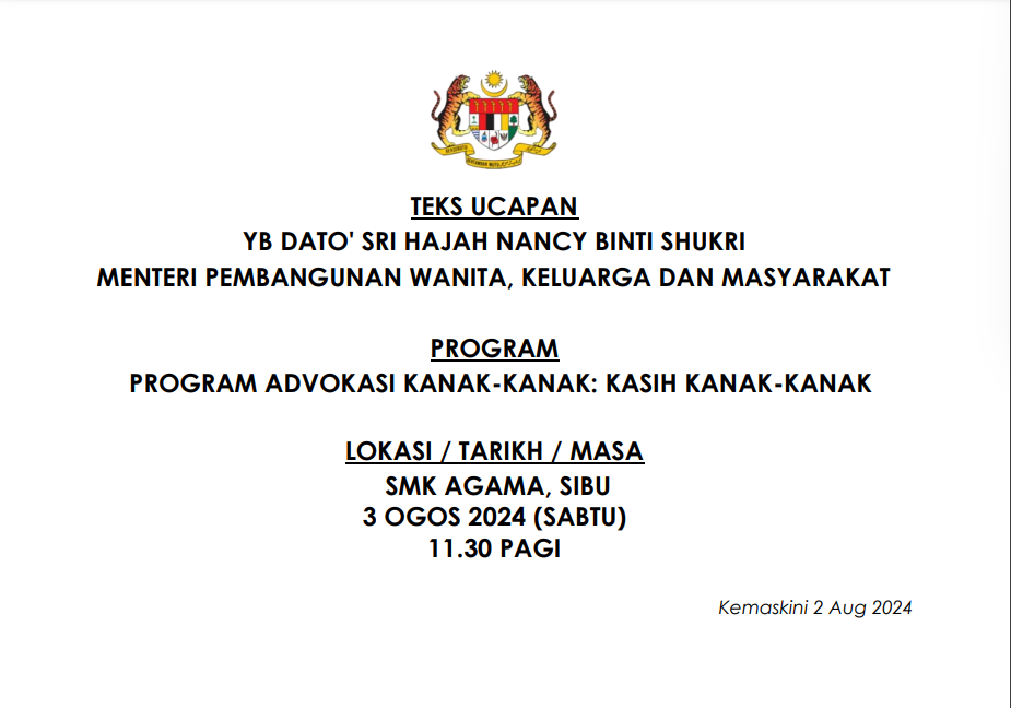 TEKS UCAPAN MENTERI / TIMBALAN MENTERI