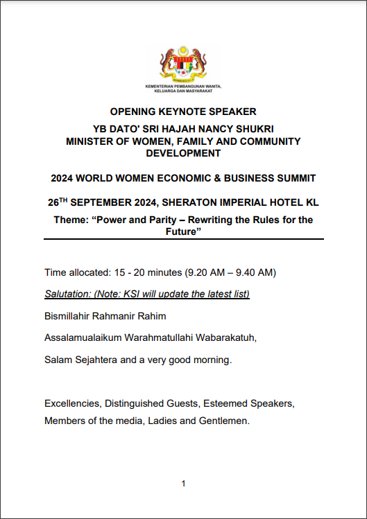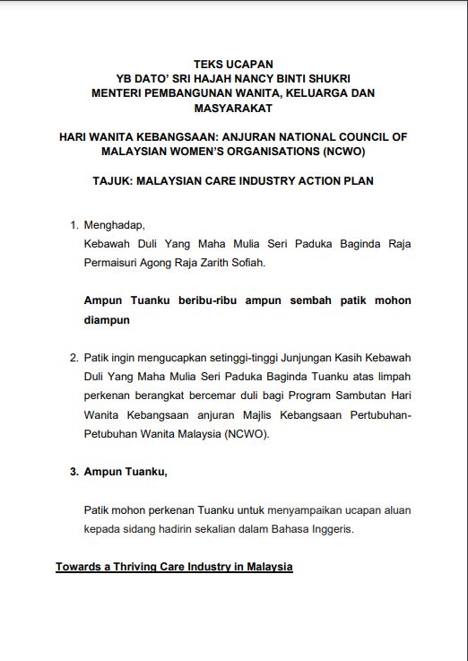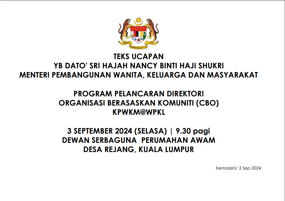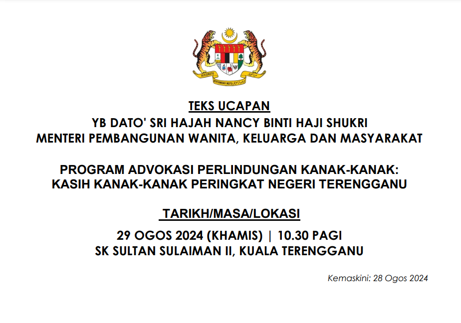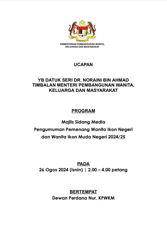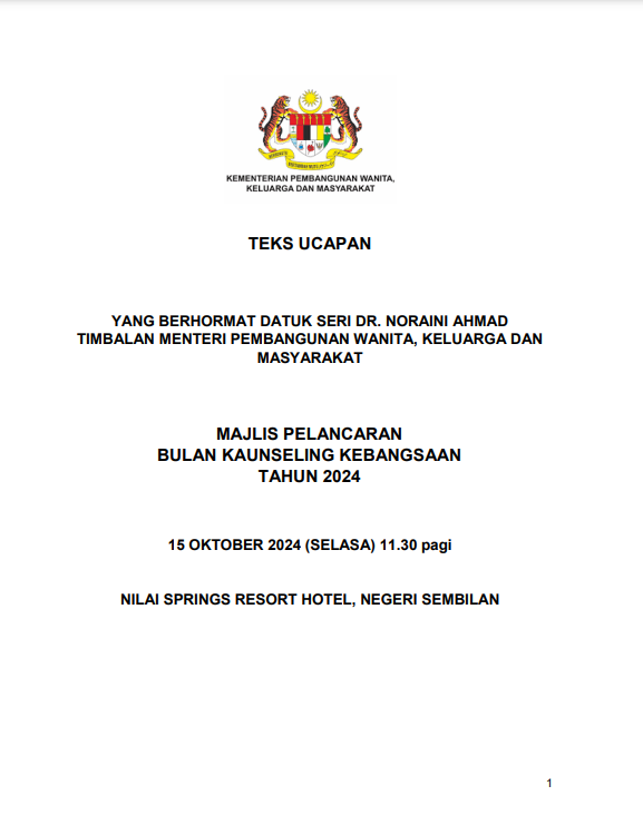 TEKS UCAPAN MENTERI / TIMBALAN MENTERI