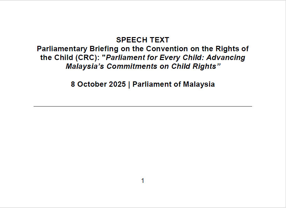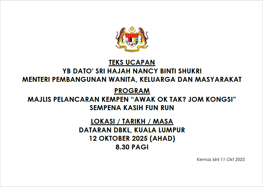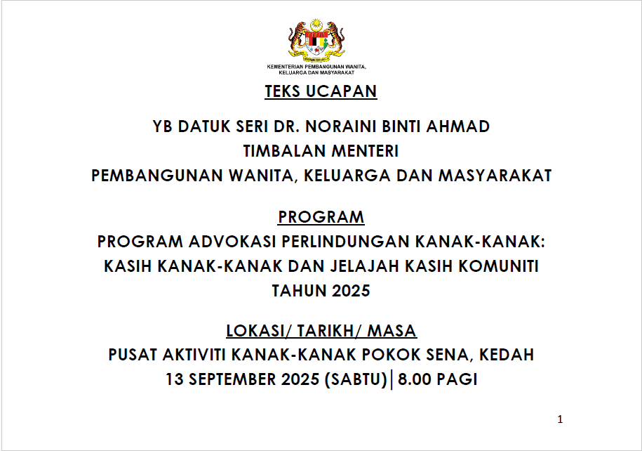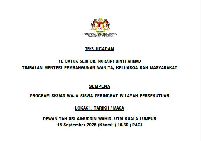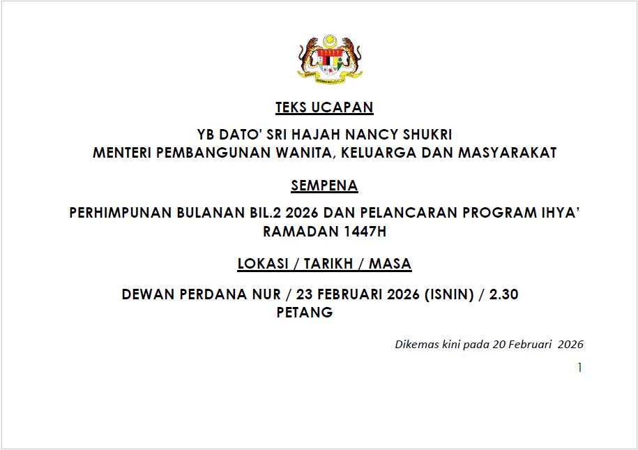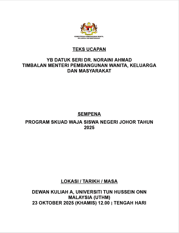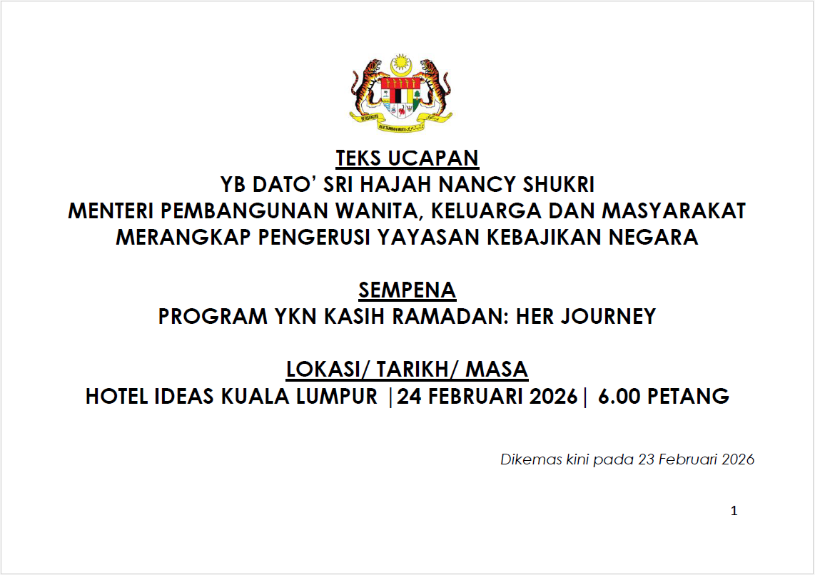TEKS UCAPAN MENTERI / TIMBALAN MENTERI