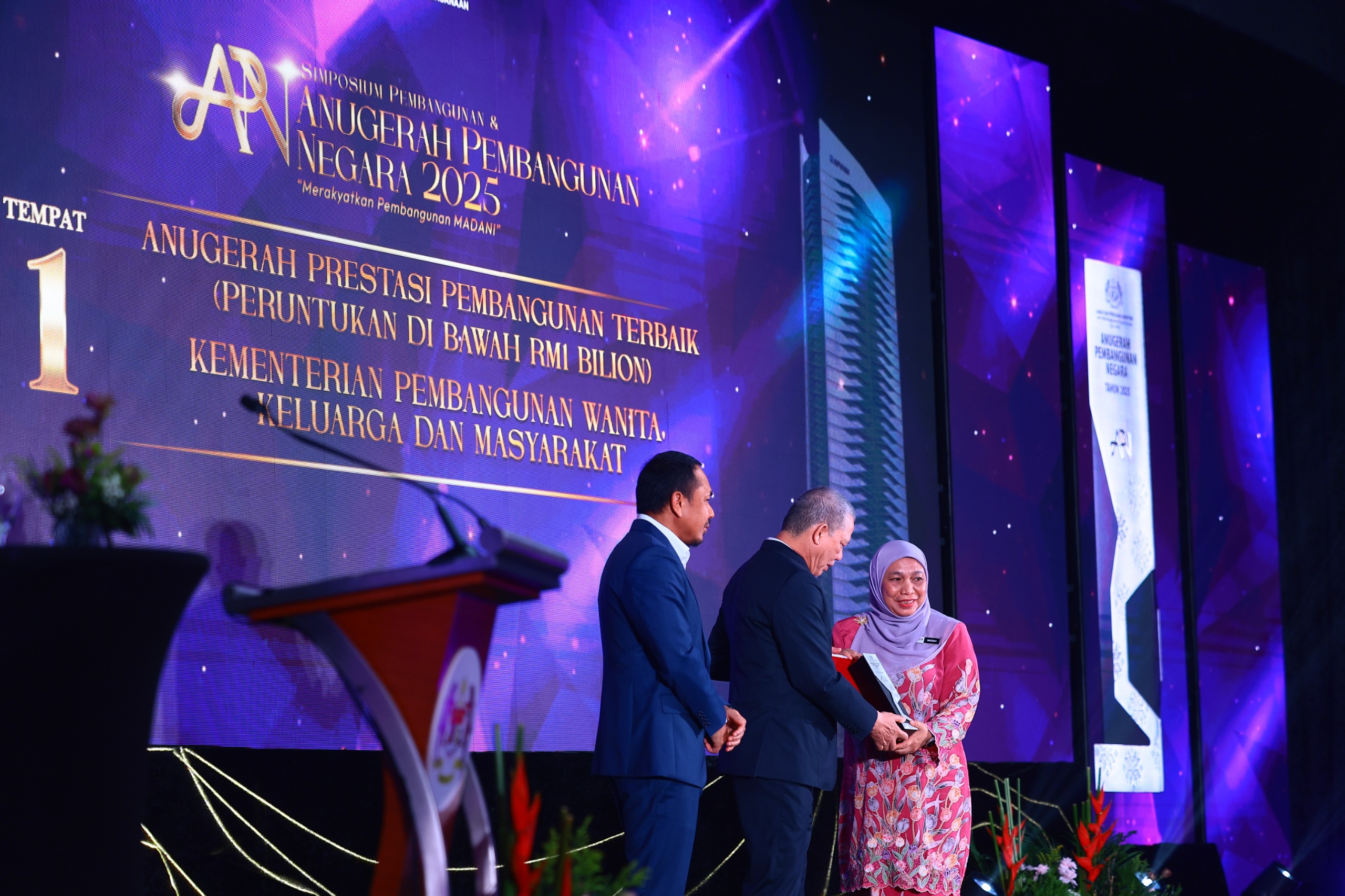 Kementerian Pembangunan Wanita, Keluarga dan Masyarakat (KPWKM) memenangi dua anugerah pembangunan sempena Simposium Pembangunan dan Anugerah Pembangunan Negara 2025 yang disempurnakan oleh YAB Perdana Menteri di Putrajaya hari ini.