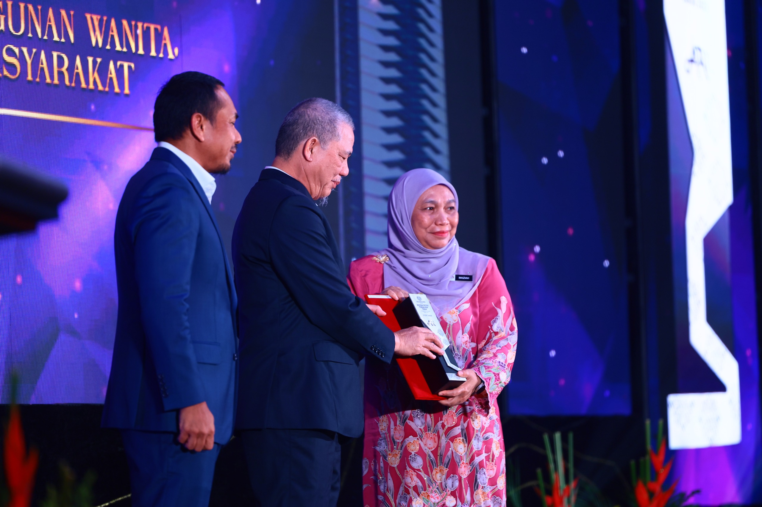 Kedua-dua anugerah tersebut telah disampaikan kepada YBhg. Datuk Dr. Maziah binti Che Yusoff, Ketua Setiausaha KPWKM. Turut hadir, YBrs. Puan Nordina binti Haron, Ketua Pegawai Eksekutif, Yayasan Kebajikan Negara; YBrs. Encik Mohd Hanafee bin A Rahman, Timbalan Ketua Pengarah (Pengurusan), Lembaga Penduduk dan Pembangunan Keluarga Negara; YBrs. Encik Arfan bin Sulaiman, Pengarah Bahagian Perancangan dan Pembangunan, Jabatan Kebajikan Masyarakat; dan YBrs. Puan Syahidatul Aazimah binti Ahmad Sidique, Setiausaha Bahagian Pembangunan, KPWKM.