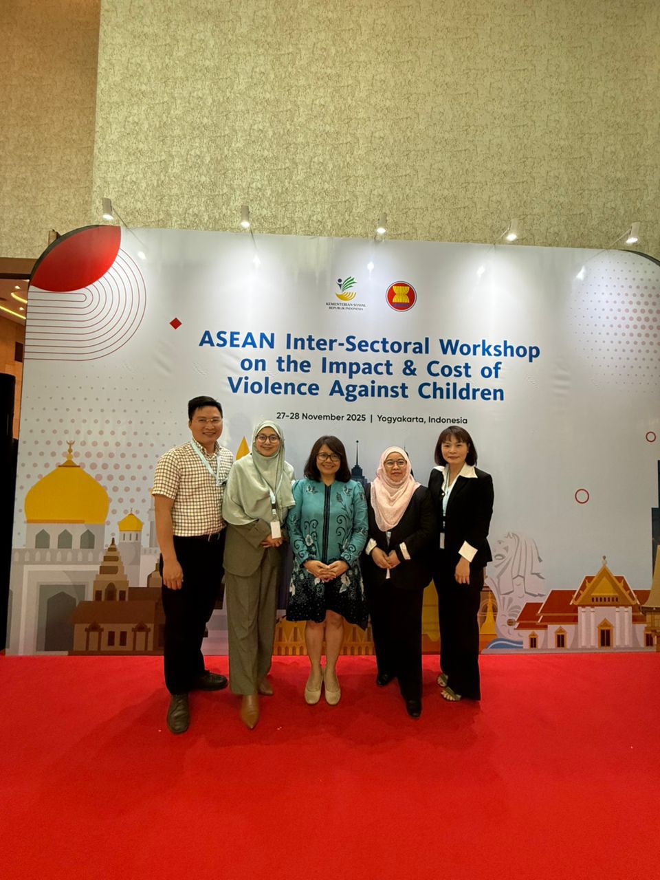 Delegasi Malaysia iaitu Puan Wan Noraidah binti Wan Mohd Zain dari Jabatan Kebajikan Masyarakat mewakili ACWC (Hak Wanita) dan Dr. Nurul Huda Abdul Manaf dari Unit Dasar Wanita dan Gender, Bahagian Dasar dan Perancangan Strategik, Kementerian Pembangunan Wanita, Keluarga dan Masyarakat (KPWKM) mewakili SOMSWD telah menghadiri ASEAN Intersectoral Workshop on the Impact and Cost of Violence Against Children yang berlangsung di Yogyakarta, Indonesia pada 27 hingga 28 November lepas.